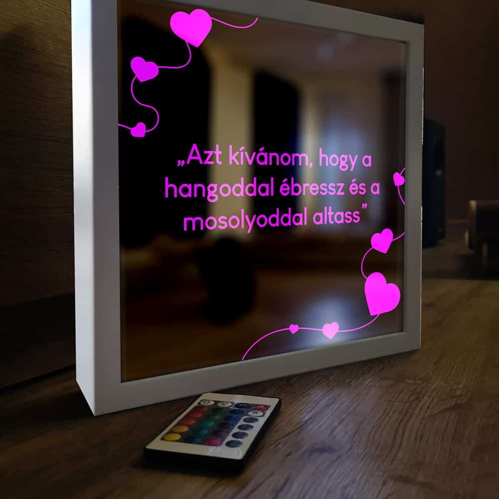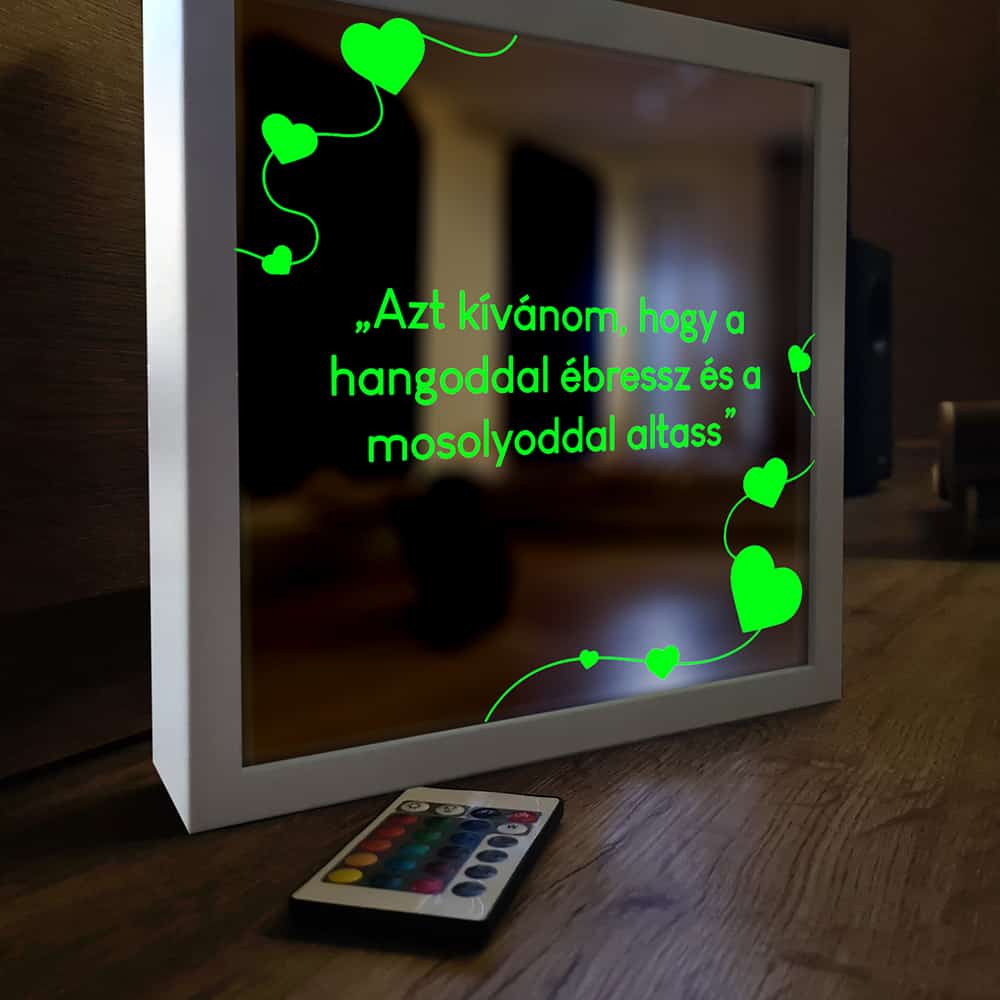 1 x “Azt kívánom……” mintával gravírozott tükör fehér vagy fekete képkeretben.
